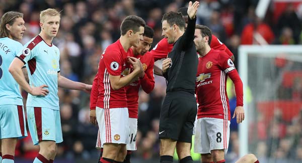 But it is likely as much of the post-match talk will revolve around referee Mark Clattenburg as the Clarets goalkeeper after giving Ander Herrera a harsh-looking second booking having already appeared to send off Mourinho.