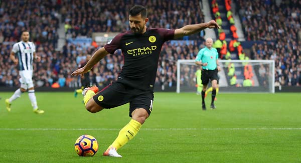 Sergio Aguero opened the scoring from a tight angle on 19 minutes after being slipped in by Ilkay Gundogan, with the second a brilliant strike into the top corner nine minutes later.