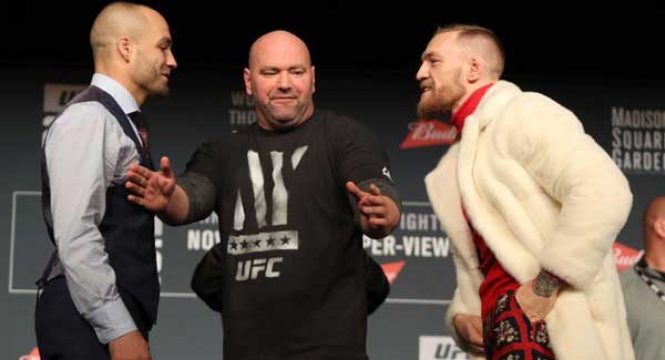 There are three title fights on the organisation’s stacked first Big Apple card but McGregor’s tilt at history, in his first UFC fight at the 155lb level, is the storyline that dominates all else.