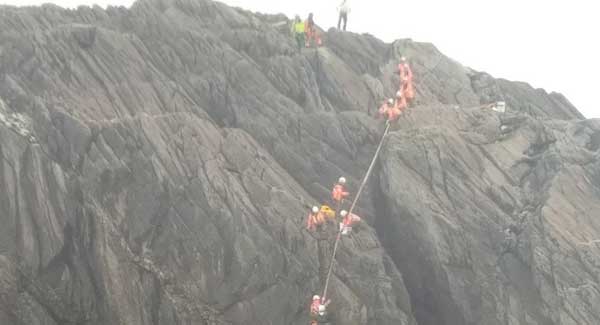 Despite the precarious nature of the emergency, the quick-thinking rescue personnel ensured tragedy was prevented by setting up a climbing rig and sending down a climber, who managed to reach the casualty and get him into a rescue harness.
