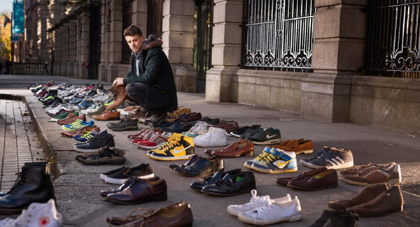 A total of 380 pairs of shoes were laid outside Dáil Éireann today, symbolising the number of Irish men who die by suicide each year.