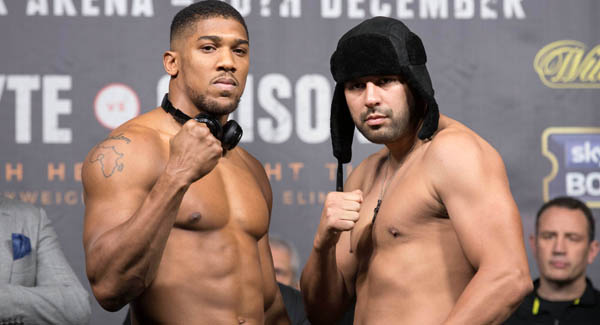 Joshua’s relaxed demeanour comes in stark contrast to the simmering rivalry between Dillian Whyte and Dereck Chisora, who will clash on the undercard in what is now a non-title contest after the British Boxing Board of Control elected to remove its sanction as a British title fight following Chisora’s table-throwing antics at the press conference.