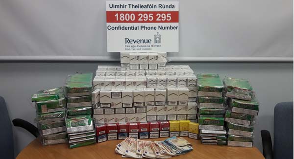 The seized tobacco products, including cigarettes branded Jin Lin, Winston and Marlboro Gold and tobacco branded EastEnders, have a retail value of €10,370 with a potential loss of Revenue of €8,100. A file is being prepared with a view to prosecution.
