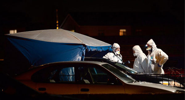 A tent was erected over Kirwan’s Mondeo car for several hours following the shooting while forensic examinations took place at the scene.