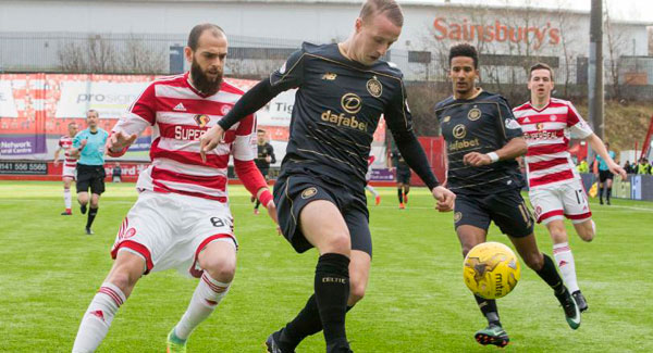 The home side enjoyed their share of possession in conditions that made it difficult for both sets of players but put little real pressure on Celtic keeper Craig Gordon, who dealt comfortably with Dougie Imrie’s 20-yard drive in the 35th minute to end a swift Accies counter-attack.