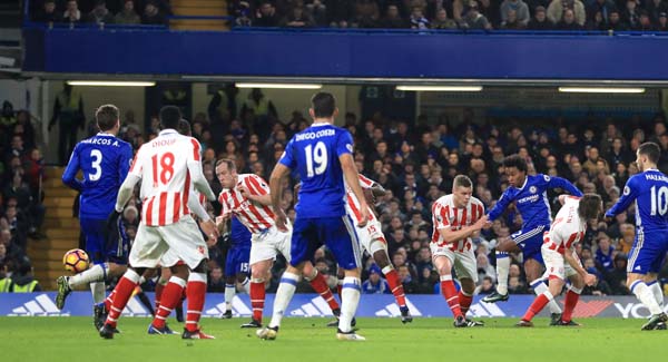 Willian put Chelsea back in front but Peter Crouch netted his first Premier League goal in two seasons to equalise in the 64th minute.