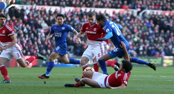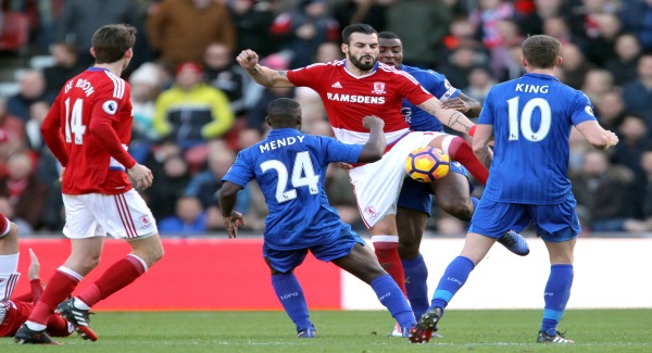 Marten de Roon and Alvaro Negredo also came close for the home side but Boro were guilty of dismal distribution and almost paid for it on 40 minutes when Riyad Mahrez was only denied by Fabio’s timely interception.