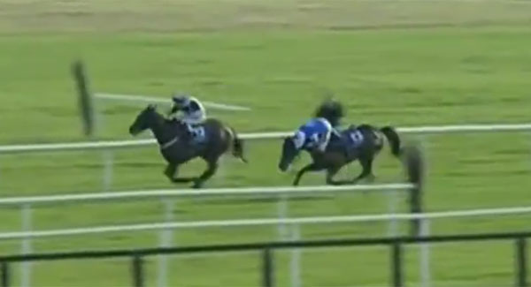 He managed to stay on board and even made a dash for victory, but finished half-a-length off in second.