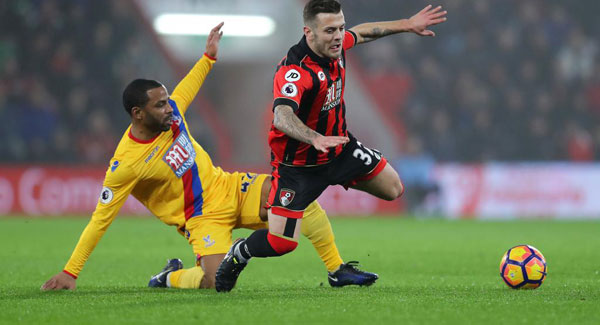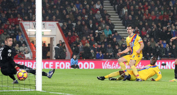 Eagles winger Wilfried Zaha was back in the starting line-up for the first time since he returned from the African Nations Cup and came close to putting the visitors in the lead early on in foggy conditions. Some impressive footwork saw the Ivory Coast international lose Bournemouth’s defence before his low shot hit the post.