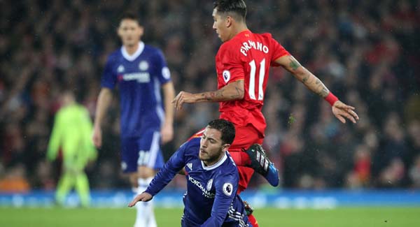Chelsea could have left Anfield with all three points after Costa’s penalty was saved by Simon Mignolet, who had been embarrassed by David Luiz’s quickly-taken first-half free-kick which was then cancelled out by Georginio Wijnaldum’s header.