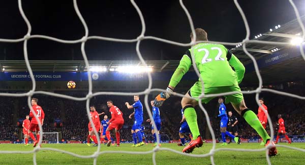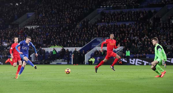 Liverpool failed to get hold of the ball in midfield and Marc Albrighton instantly split the visitors’ defence with a first-time ball to put Vardy clean through.