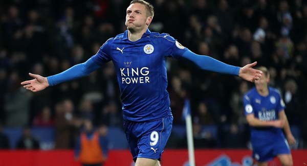 Leicester took the lead – and scored their first Premier League goal of 2017 – after 28 minutes when Vardy slotted calmly past Simon Mignolet.