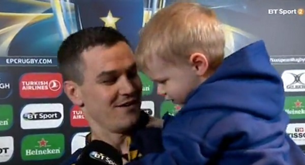 Jonathan Sexton was upstaged by his son during a post-match interview this afternoon.