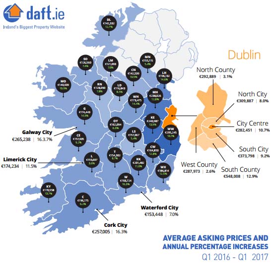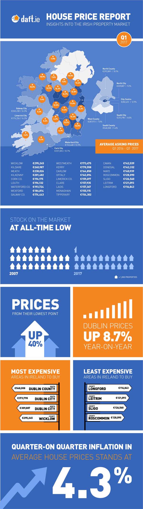 Prices rose by an average of 4.3% in the first three months of the year, according to the latest report by Daft.ie.