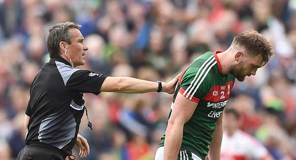 Mayo made an encouraging start with scores from Cillian O’Connor and Andy Moran, but once Derry got into their stride, it was clear a nervous home defence was in trouble.